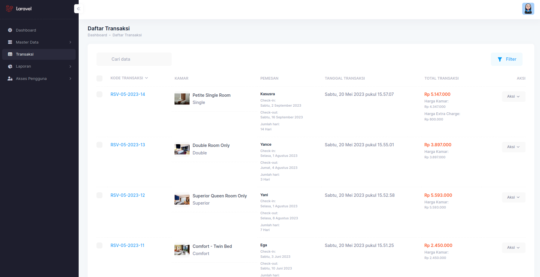 Demo : Registrasi dan Reservasi Kamar : https://jam.dev/c/dfd639fc-d92a-4d6c-8919-d765ed56242f