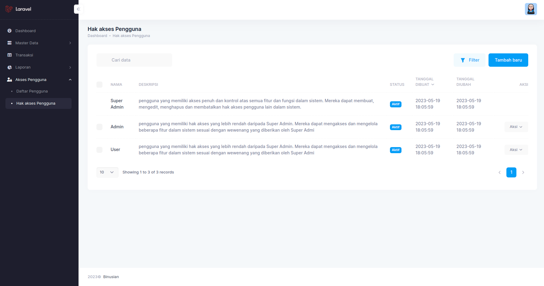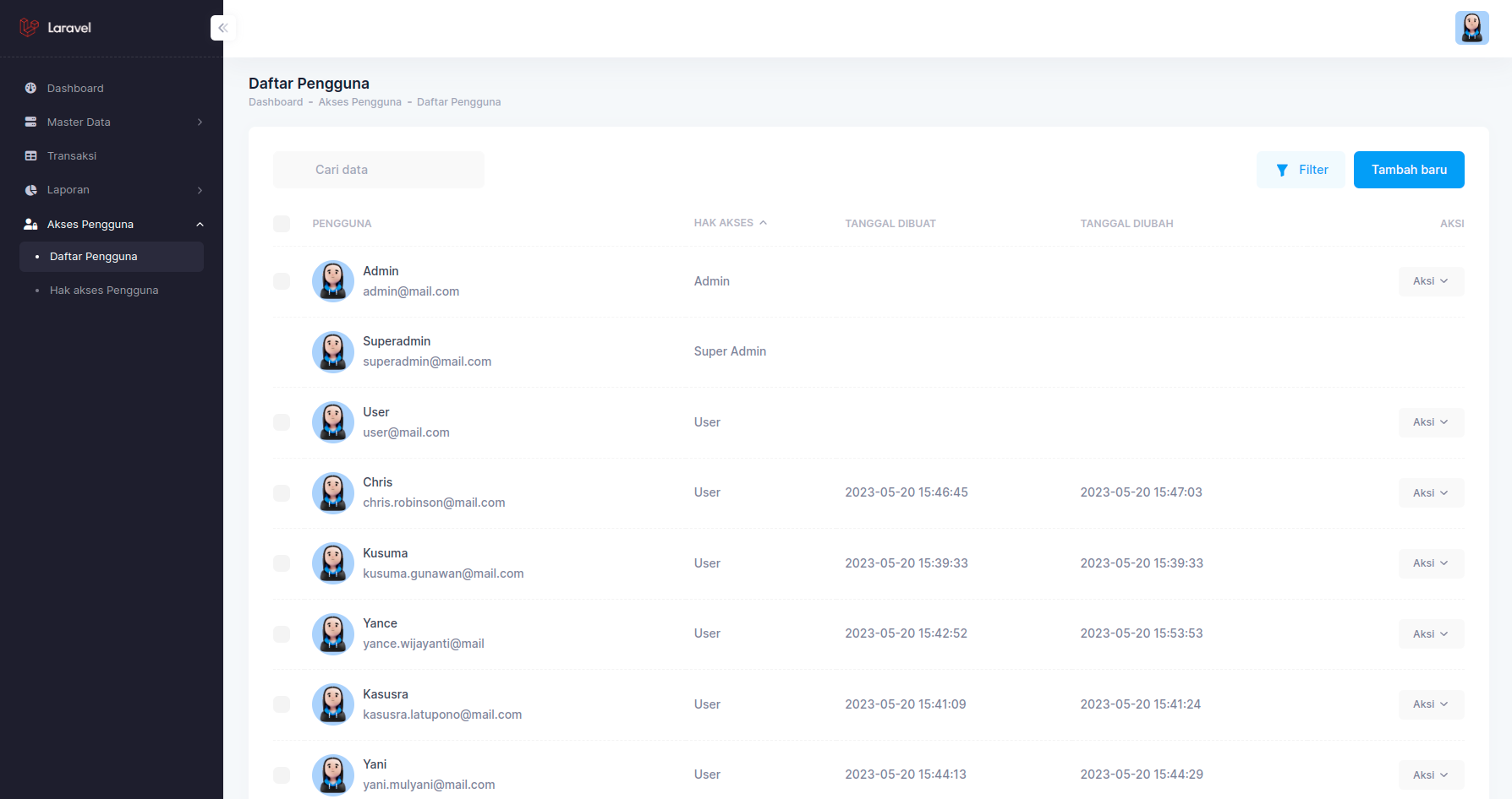 No Role Username Kata sandi 1 Super Admin superadmin superadmin 2 Admin admin admin 3 User user user