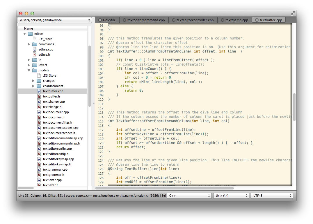 - It has issues with long lines. The cause of this is the nature of QTextLayout and the support of variable font sizes. In the future this can be fixed for monospaced fonts.