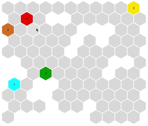 ⬡⬢ A turn-based strategy game on a hexagonal board. Play it here!