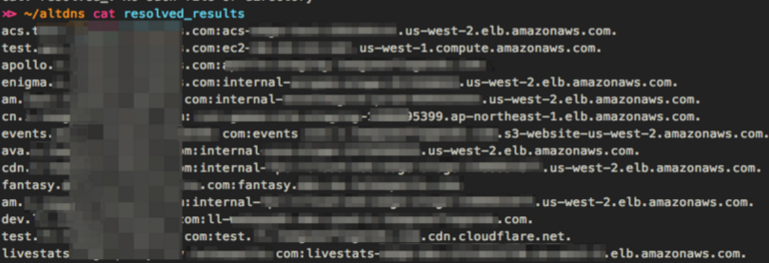 Alternatively, the -r flag can be passed to altdns so that once this output is generated, the tool can then resolve these subdomains (multi-threaded) and save the results to a file.