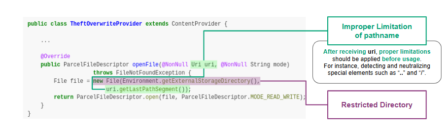 We use the ovaa.apk sample to explain the vulnerability code of CWE-23.
