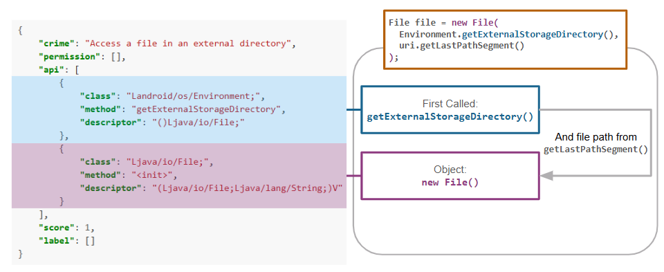 accessFileInExternalDir.jsonto identify behavior that accesses a file in an external directory.Next, we use