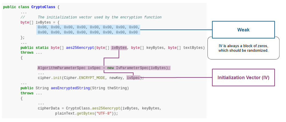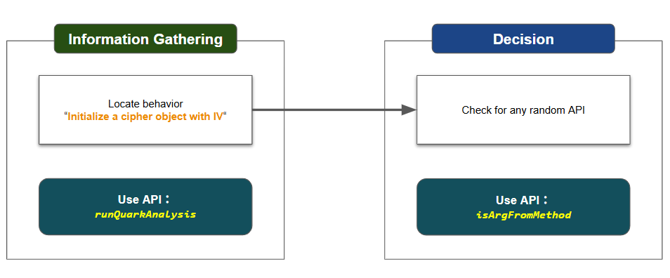 behaviorInstance.isArgFromMethod(targetMethod)to check if any random API is applied on the IV used in the cipher object. If NO, it could imply that the APK uses a weak IV, potentially leading to a CWE-1204 vulnerability.Quark Scipt: CWE-1204.py
