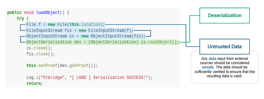 This scenario seeks to find Deserialization of Untrusted Data in the APK file.