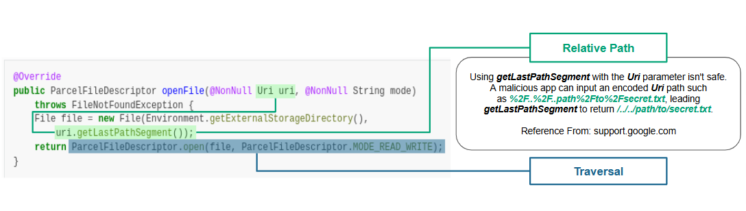 "../"is not in parameters, that implies the APK does not neutralize the special element../within the argument, possibly resulting in CWE-24 vulnerability.Quark Script: CWE-24.py