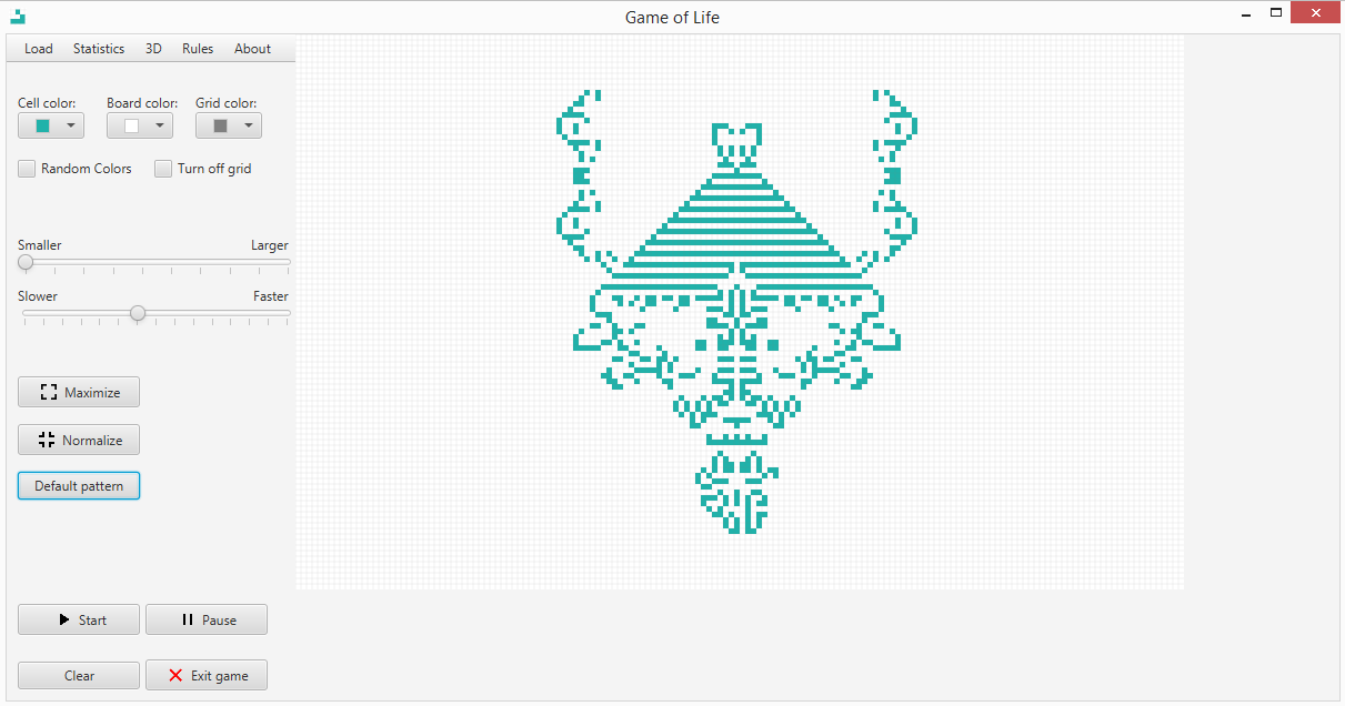 Filen 'halfmax.rle' må ligge i samme mappe som .jar-filen for at standardbrettet skal dukke opp når man trykker på 'Default pattern'. Disse filene ligger allerede i egen mappe kalt 'jar'. Når man genererer .gif-filer dukker disse opp i samme mappe som .jar-filen.