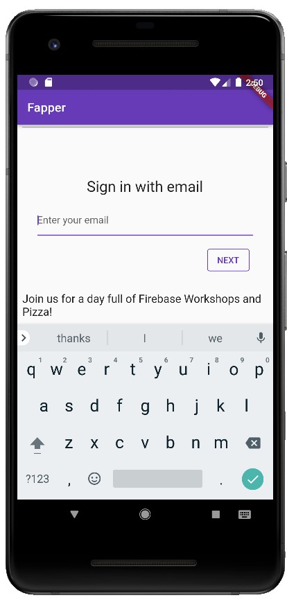 flutter_firebase_starter Flutter example of using firebase login and signup by following flutter codelabs Sign in Log in Create acc home