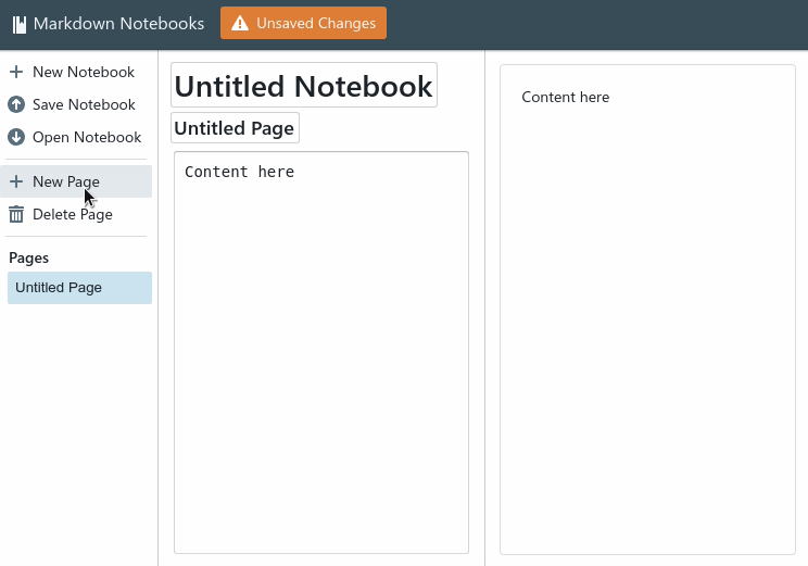 A notebook can consist of multiple pages. You can create pages, delete pages, and reorder pages by dragging and dropping: