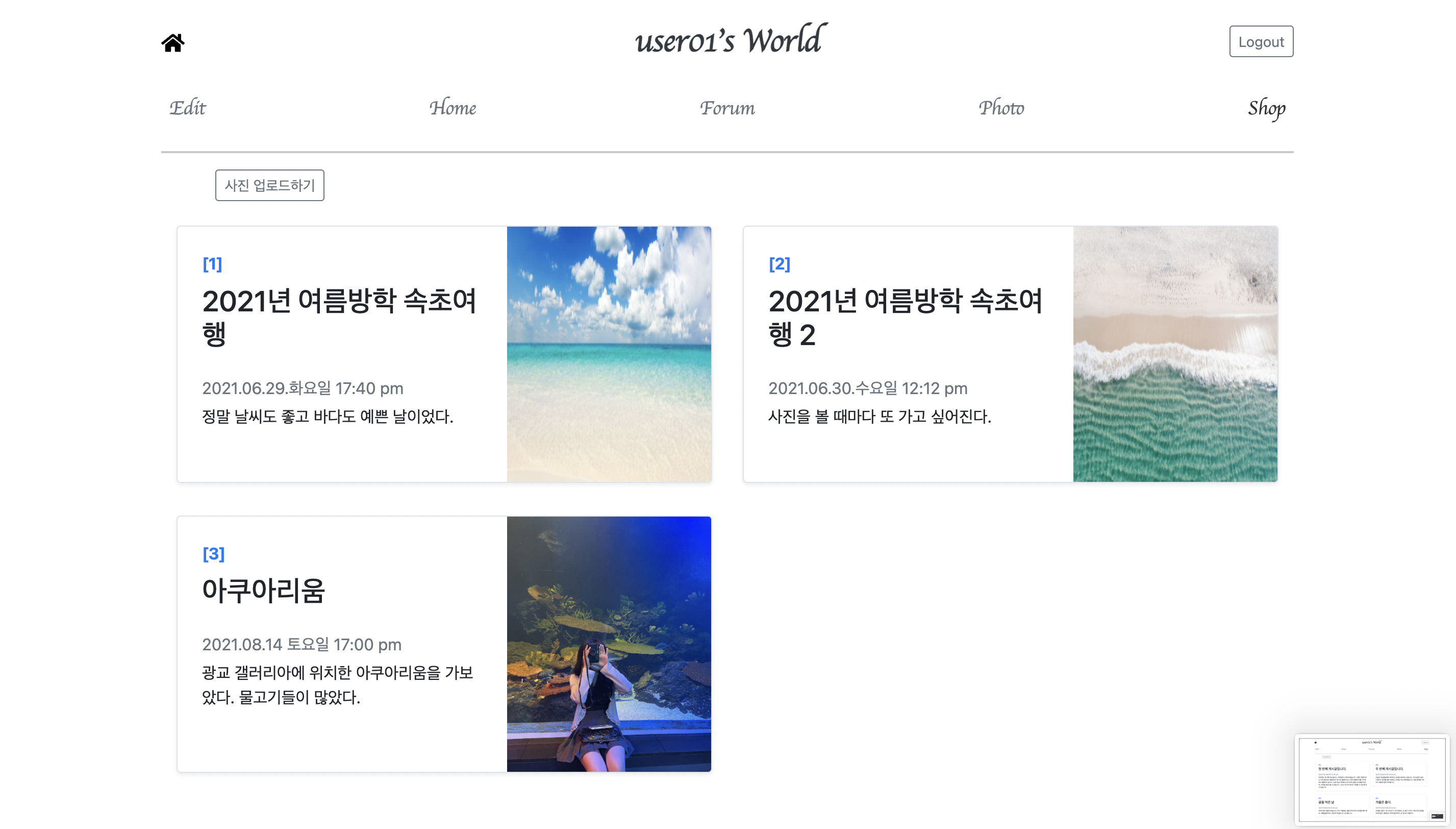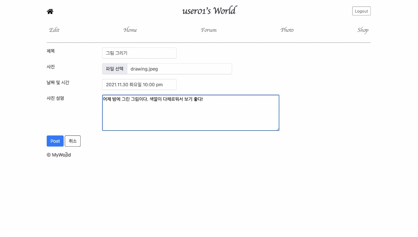 (3-3) photo 사용자 사진 글 출력 [사진 업로드하기] -> 사진 글 작성 후 [post]