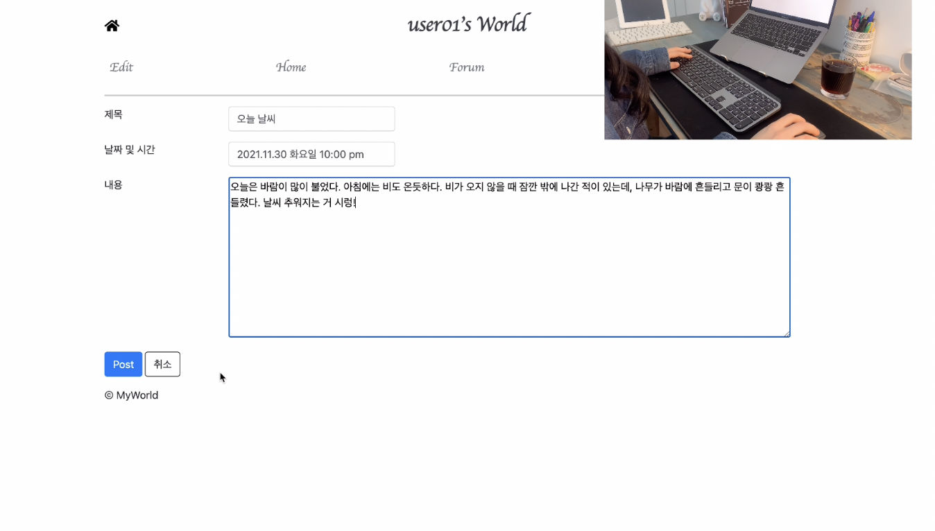 지능웹설계 장지영 2021-2 지능 웹 설계 프로젝트 [MyWorld]