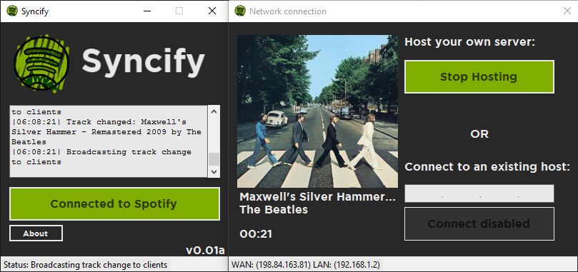 That's it! any changes to spotify on the host machine will be propogated to connected clients!