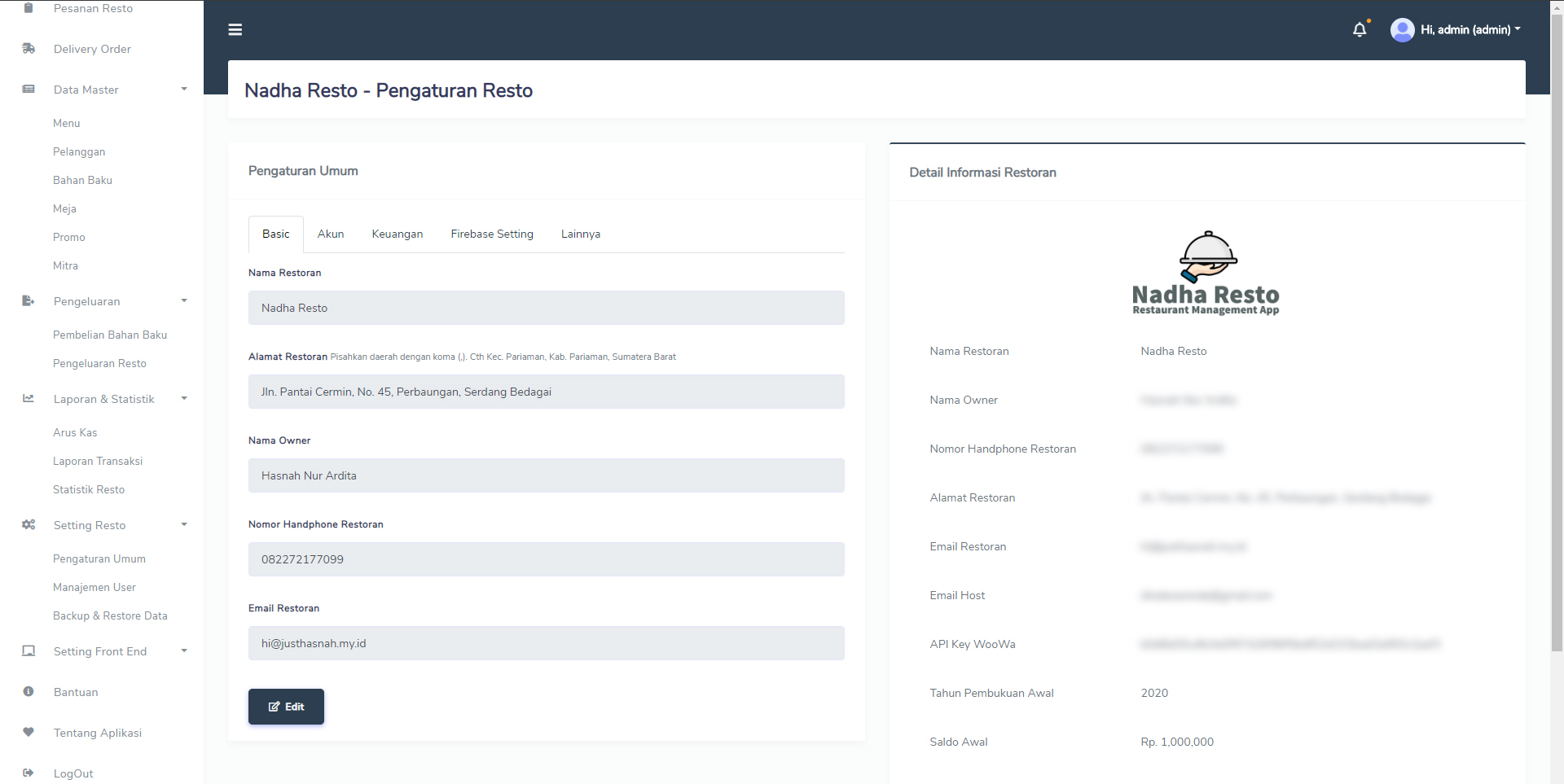 - Konfigurasi pengaturan restoran sebelum menggunakan aplikasi ini