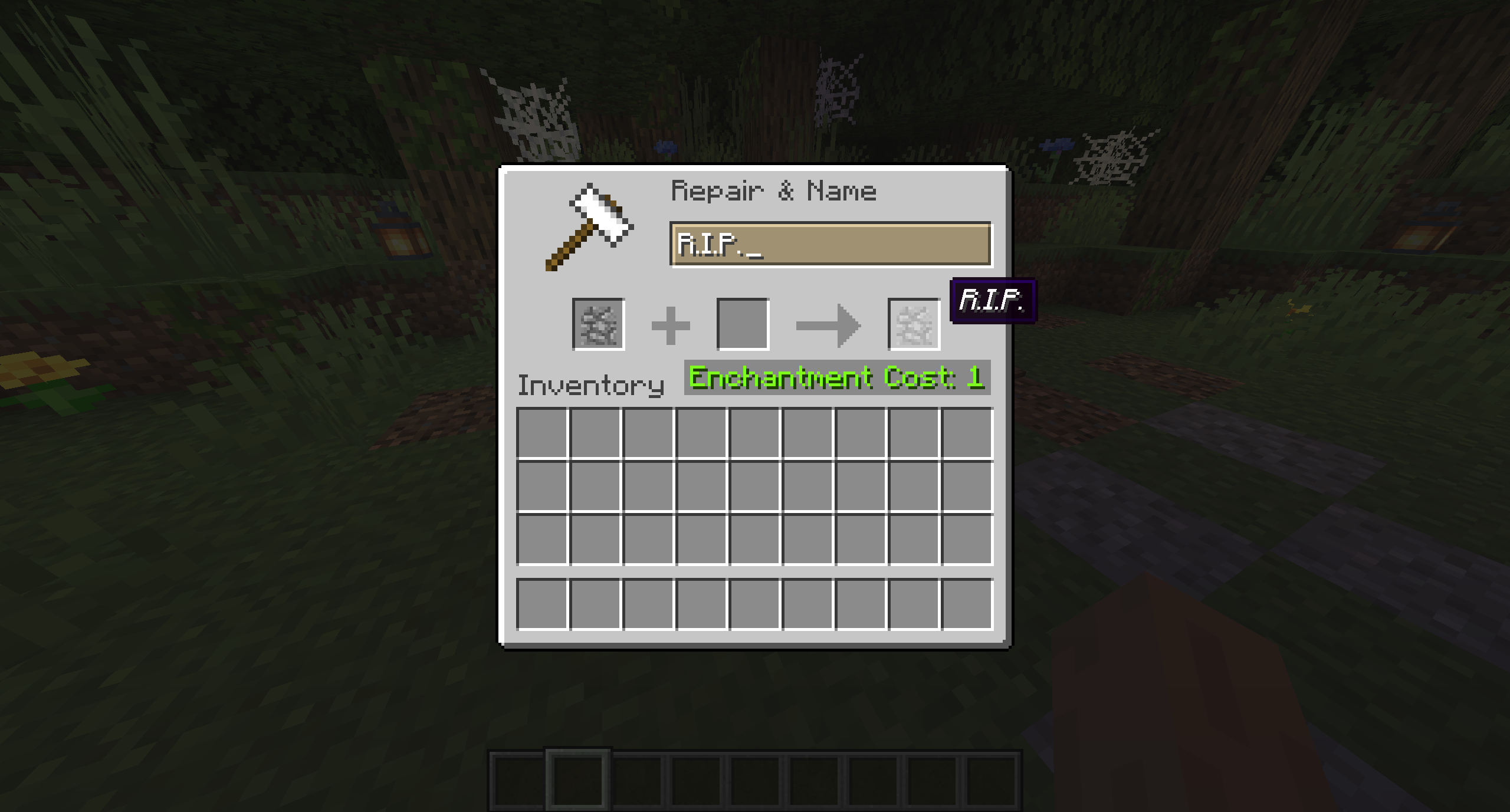 Naming the grave in an anvil, allows you to have custom text displayed on your grave.
