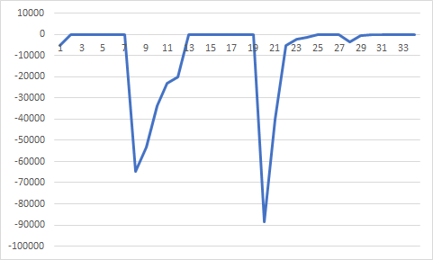 이와 같이 수행 횟수도 굉장히 맣이 늘어나고 결과값도 위에 있는 것들과는 달리 최적점과의 차이가 꽤 많이 났다. 이것으로 p0를 너무 크게 하면 최적점을 얻을 수 없다는 결론을 얻었다.