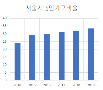 서울시 1인가구 비율이 매년 증가하고 있다.