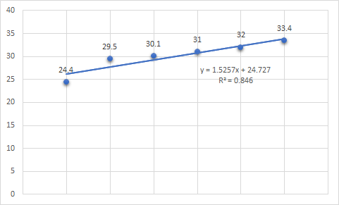 여기서 독립변수 X를 년도로 뒀고 종속변수 Y를 서울시 1인가구 비율로 두었다.
