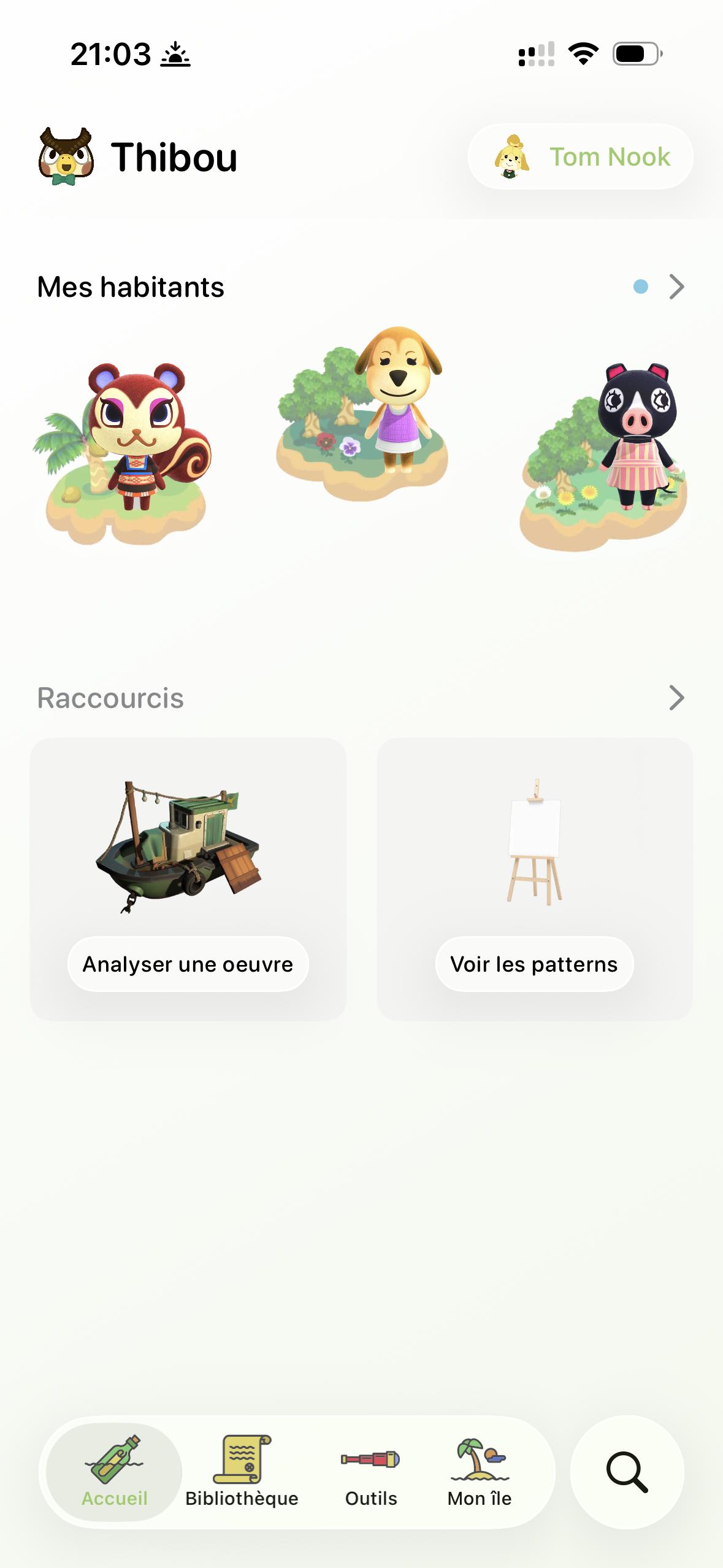 Thibou is an iOS app written in Swift, retrieving data from a REST API. OCR tools are available in the app to find real or fake painting in the game, scanning your island, and more.