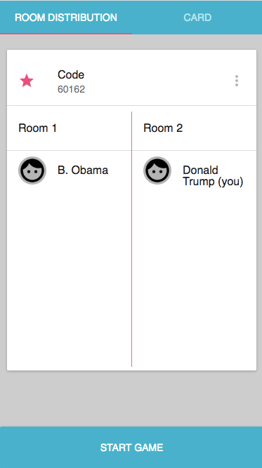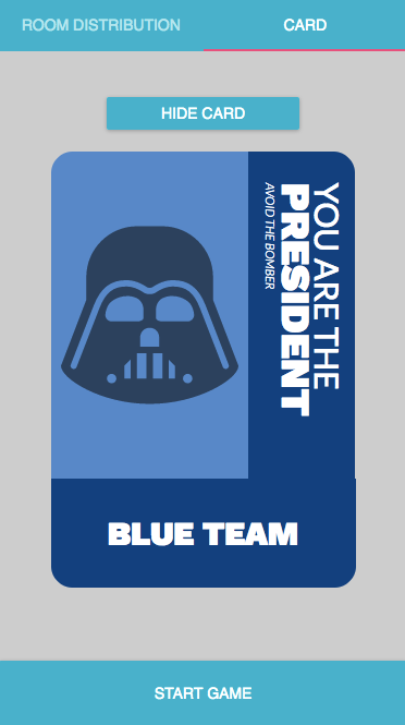 - Web app based on the famous social card game Two Rooms and a Boom, created as a responsive app for mobile devices.