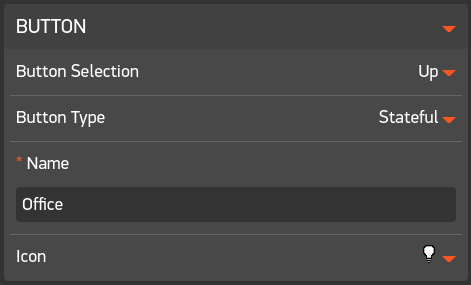 The button section contains fields that allow for the keying of 6 individual buttons per tile. Each button entry contains fields that describe how their REST call operates and how they appear in app.