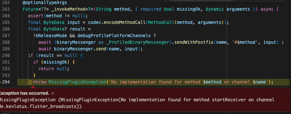 Encountered this exception on iOS. Is it because `startReceiver` is only implemented on Android in Kotlin? Any nice way to avoid this exception on iOS?