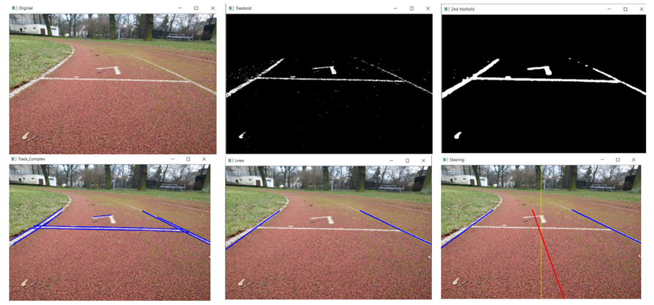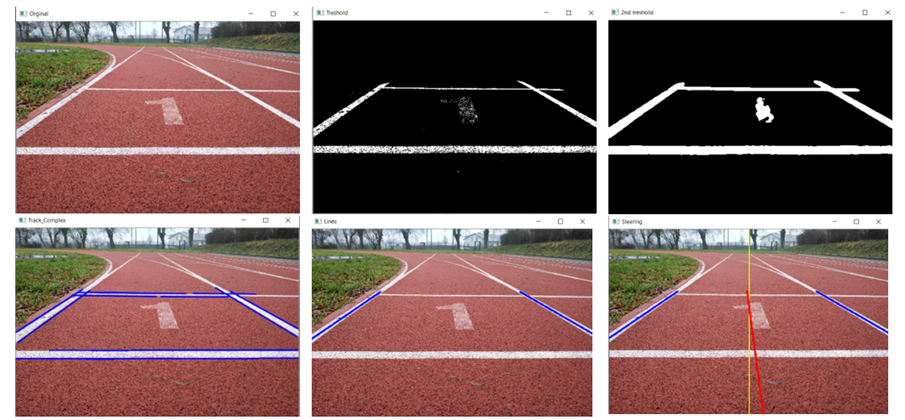 Vision system for autonomous robot supporting runners in training. Robot is driving in front of the runner on the track and keep proper pace with helps to acquire training goals. Device is using advanced lines tracking connected with PID speed and position control.