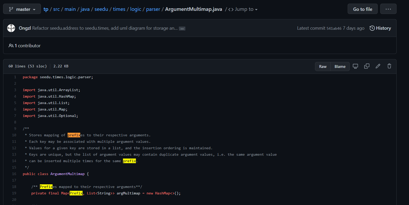 Bug inherited from AB3: Under the class diagram for the `Logic` component's `Parser` classes, `ArgumentMultiMap` has a missing dependency on `Prefix`   <!--session: 1636703149099-bd9c9d0b-e243-49df-9e7b-f3da77f094a9--><!--Version: Web v3.4.1-->