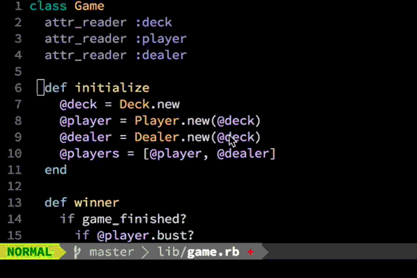 Here I press <Leader>v then c and then refactor some crappy Ruby code followed by Esc to go back to normal mode.