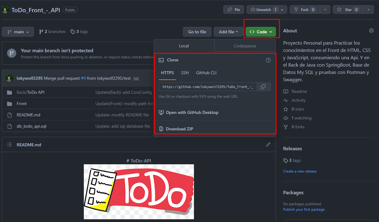 Para ello comparto el Postman que tiene todas las pruebas realizadas para la API. Se puede descargar desde el siguiente link: https://github.com/lokywolf2295/ToDo_Front_-_API/Tasks.postman_collection.json