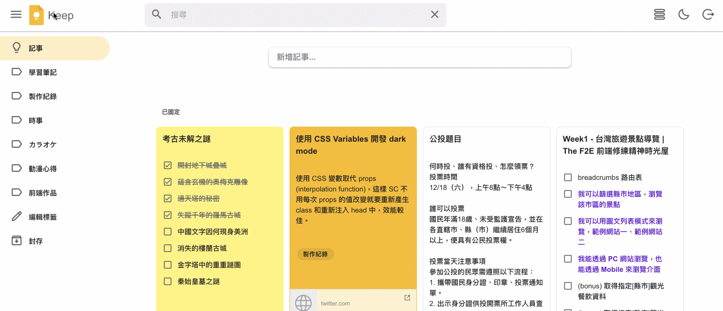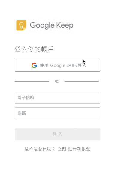 - 仿 GOOGLE KEEP 服務的全端記事 App,歡迎點選登入頁