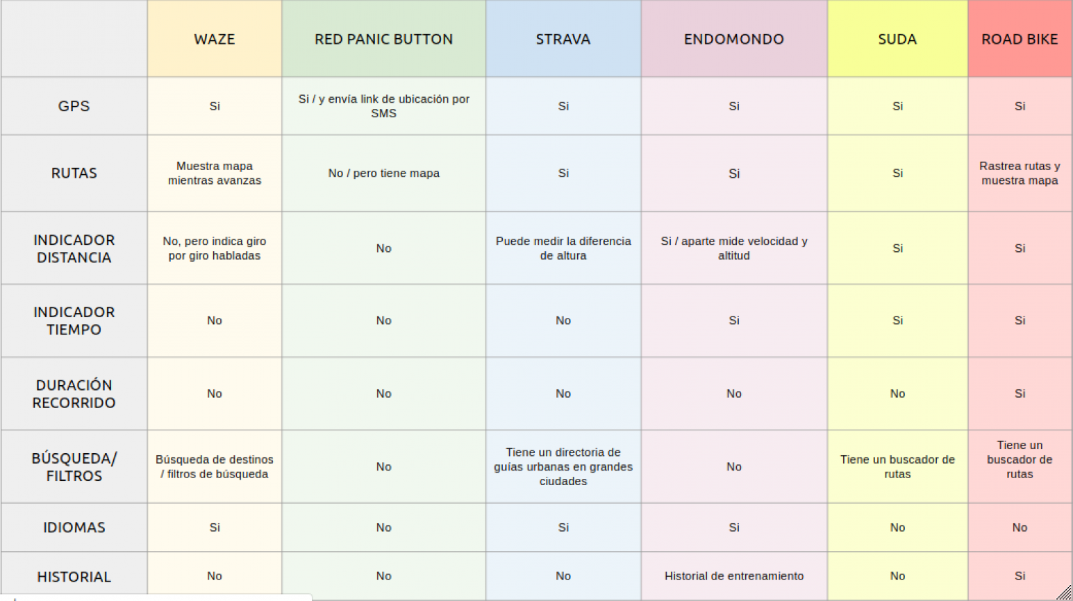 Investigue y compare otras aplicaciones que usan habitualmente los ciclistas, de ahí pude sacar lo que realmente era útil y lo que no.