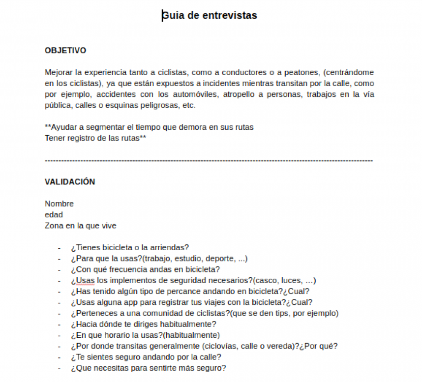 En esta ocación realicé entrevistas telefónicas a personas que viajan todos los dias en bicicleta, fueron entrevistas previamente agendadas guardando los audios