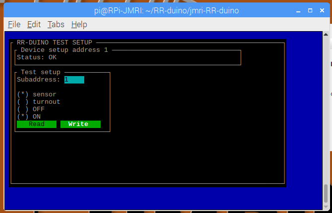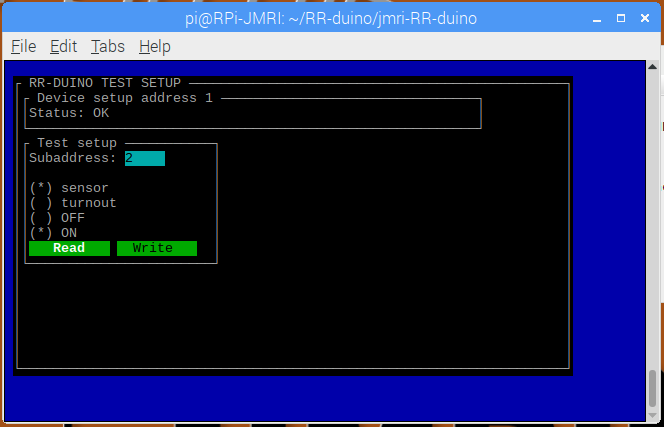 - Tab down to the 'Read' button and press Enter. The OFF should be selected.