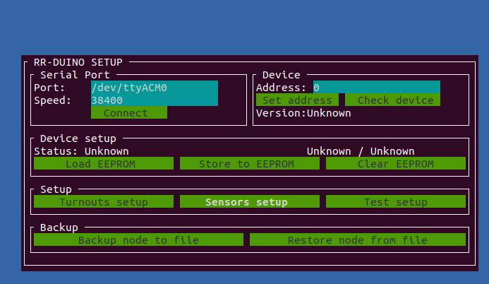 Once you have all the sensors entered, press the 'Esc' button on your keyboard to return to the previous screen. Tab over to 'Store to EEPROM' and press Enter or you will lose these settings if the node loses power or restarts.