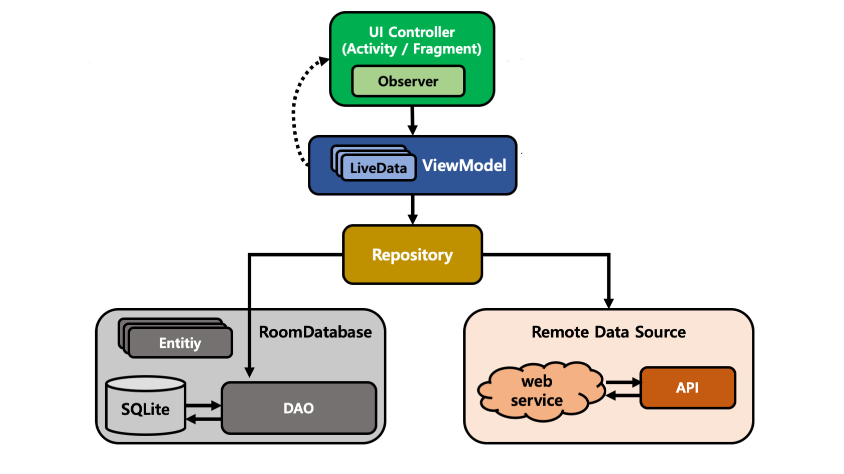 • ViewModel - UI related data holder, lifecycle aware.