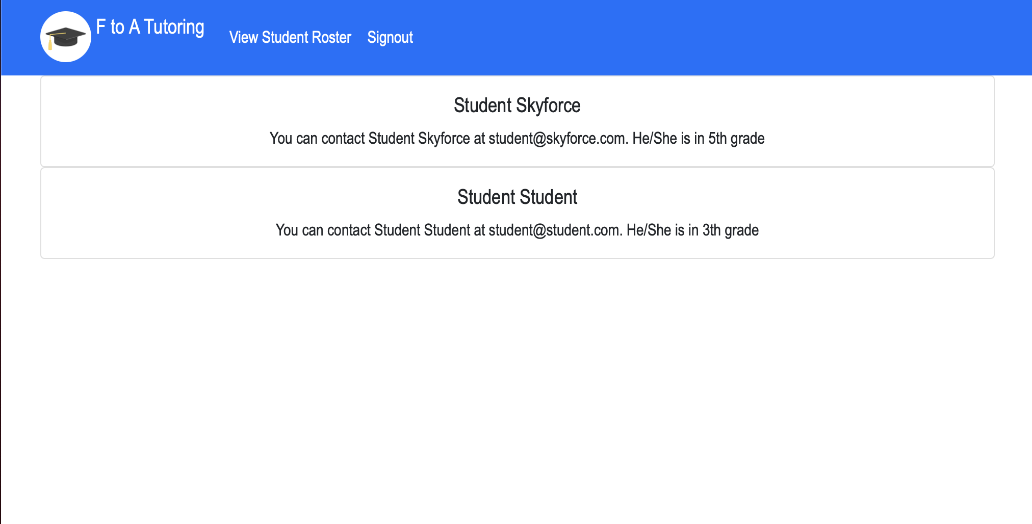 - Register Account with Name, Grade, Email, and Password