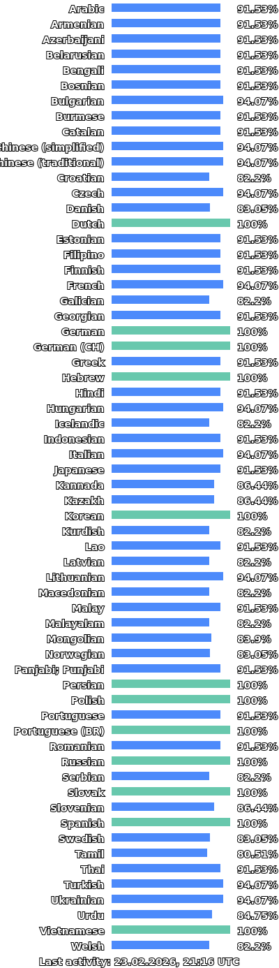 (New languages with less than 90% completion will not be added until they hit that mark.)