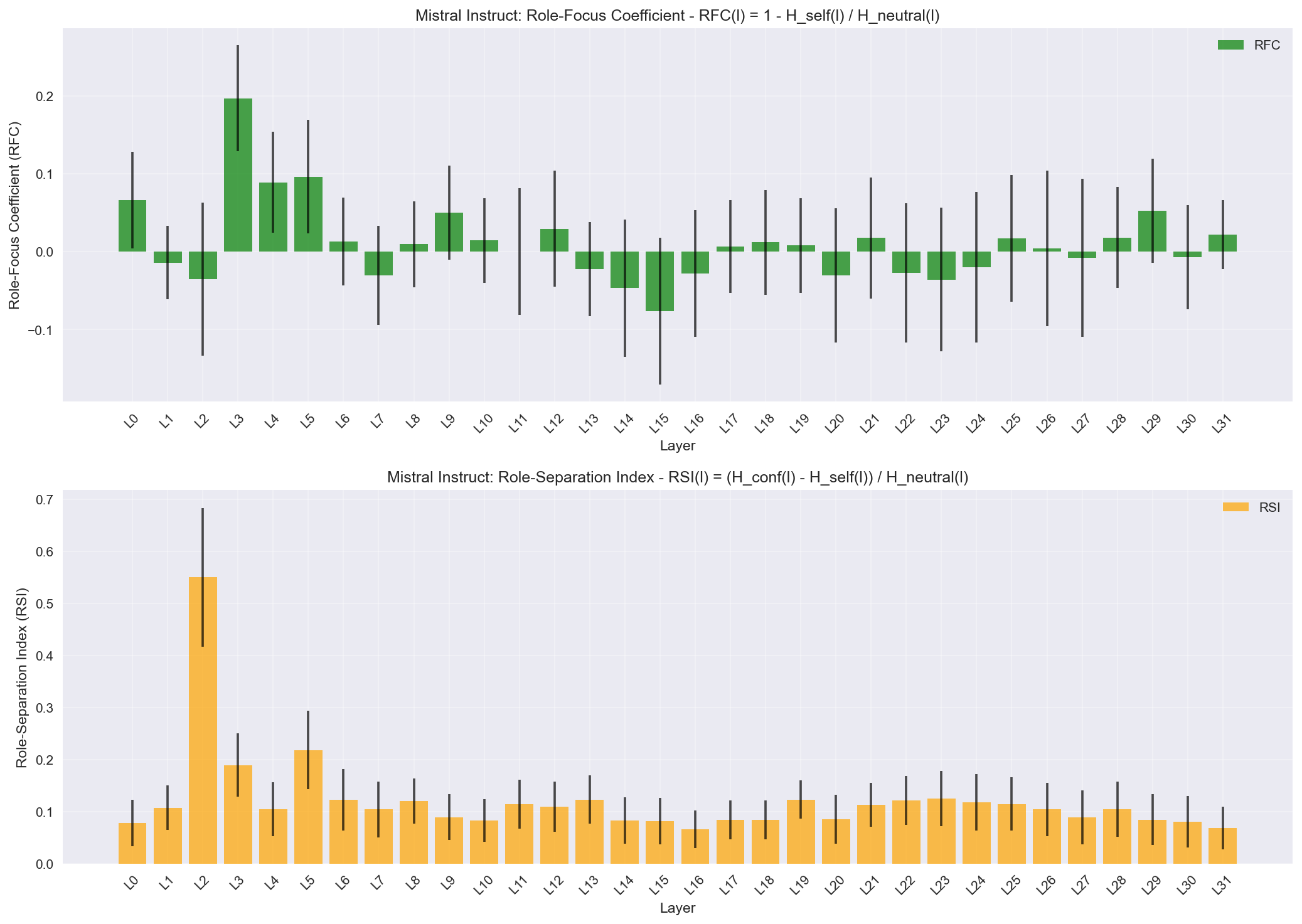 RFC(l) = 1 - H_self(l) / H_neutral(l) - Role-Separation Index (RSI):