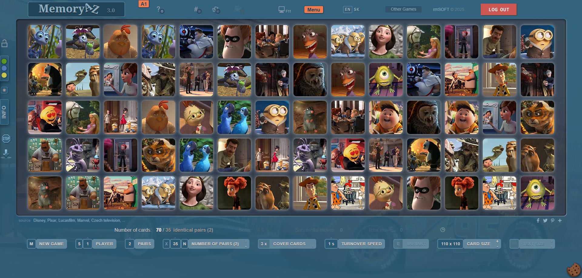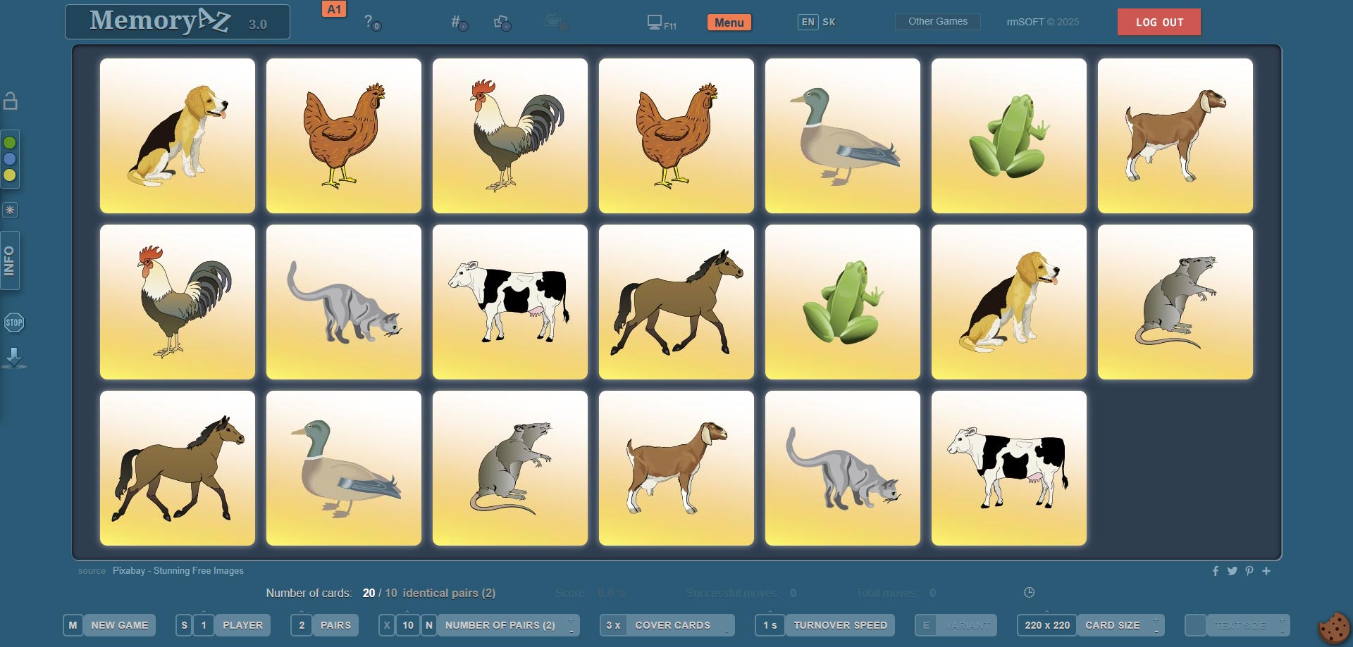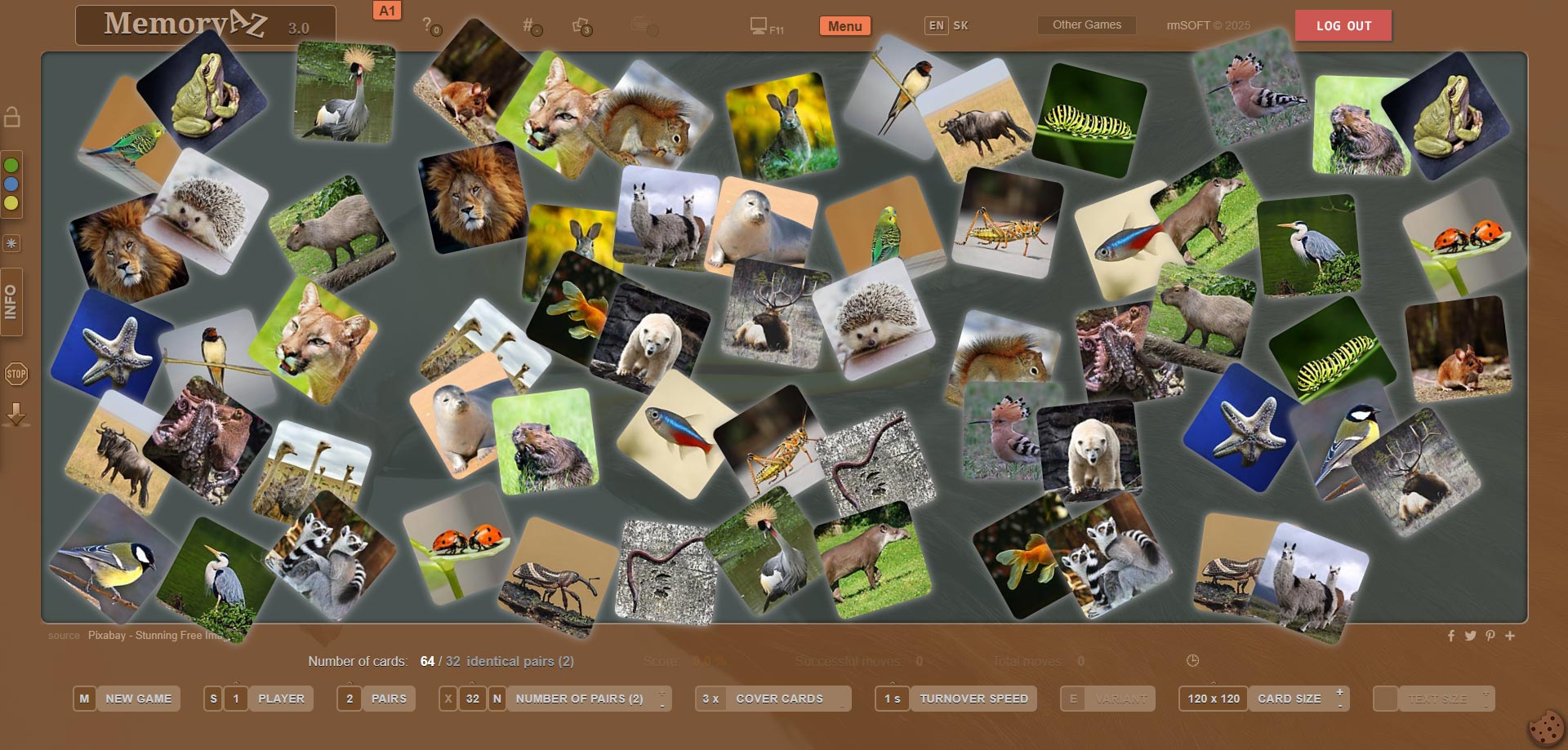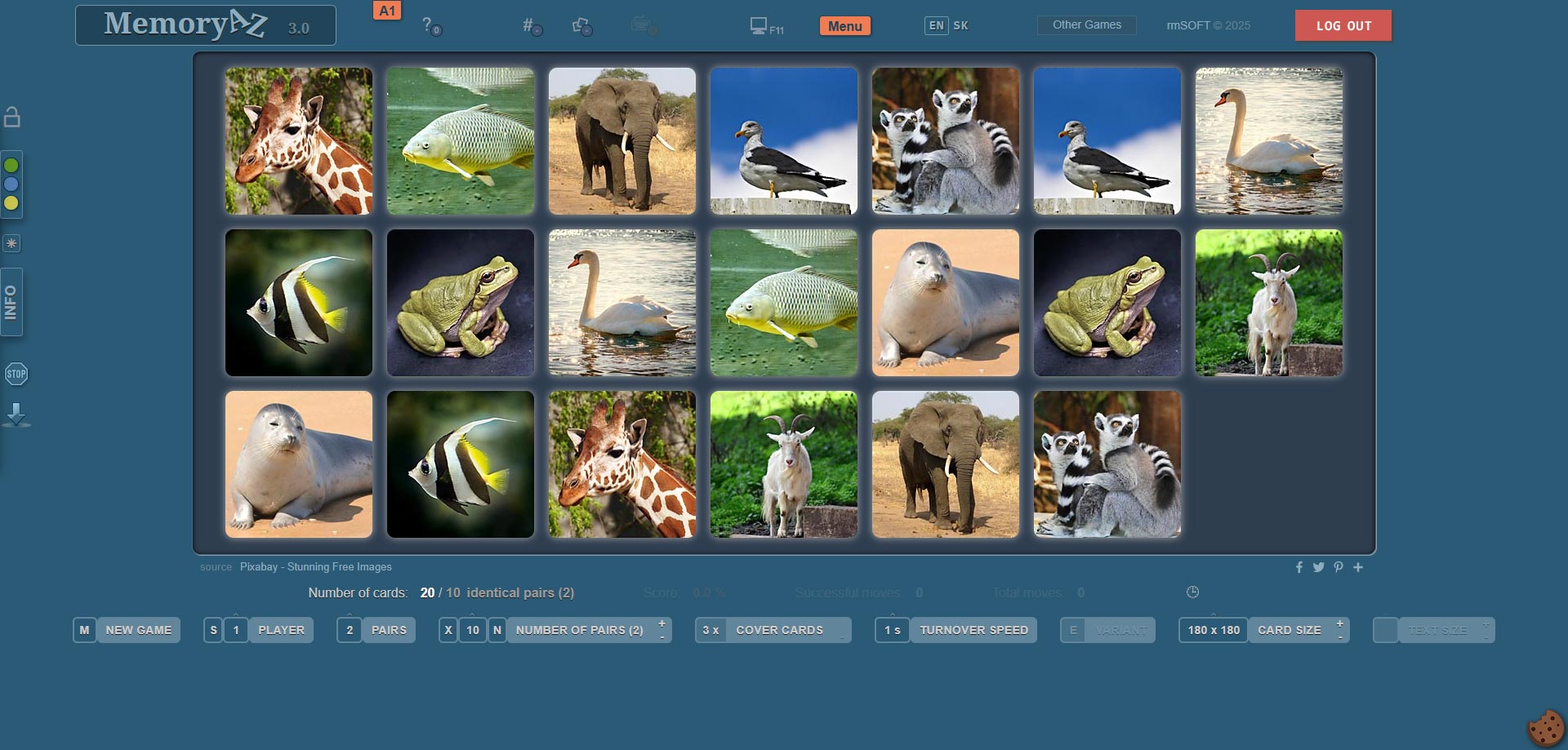 In addition to the classic game (with searching for same pairs of cards) there are different difficulty, where you need to find same (or different - but thematically similar) three of a kind, four of a kind, ...