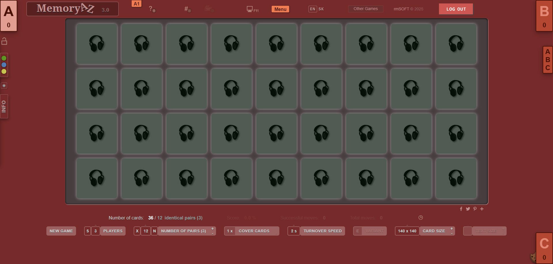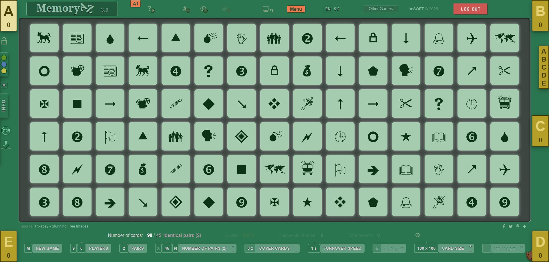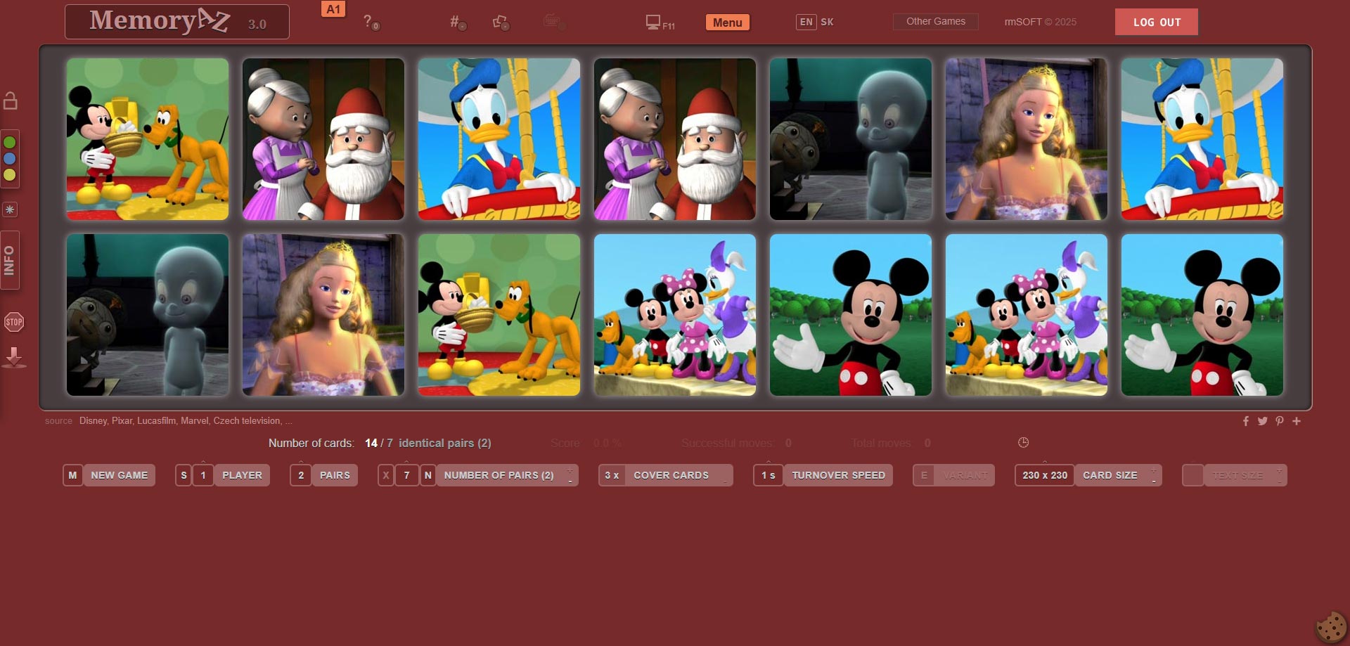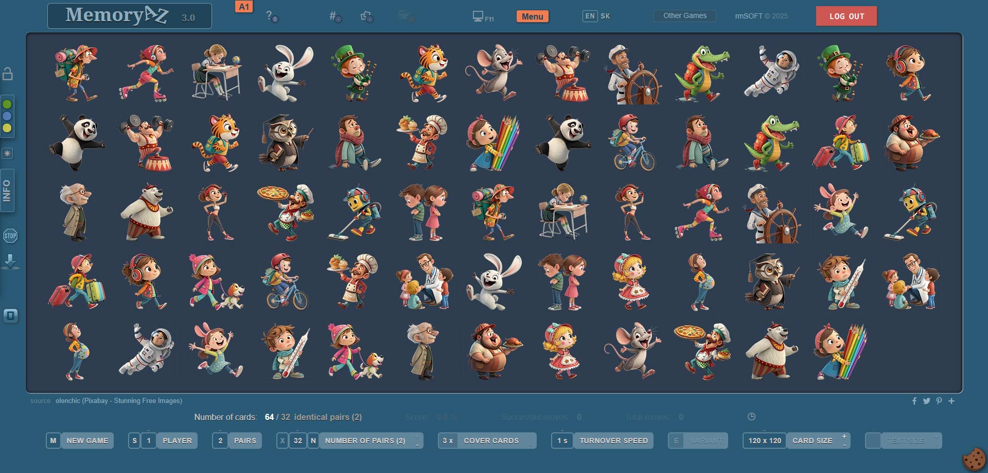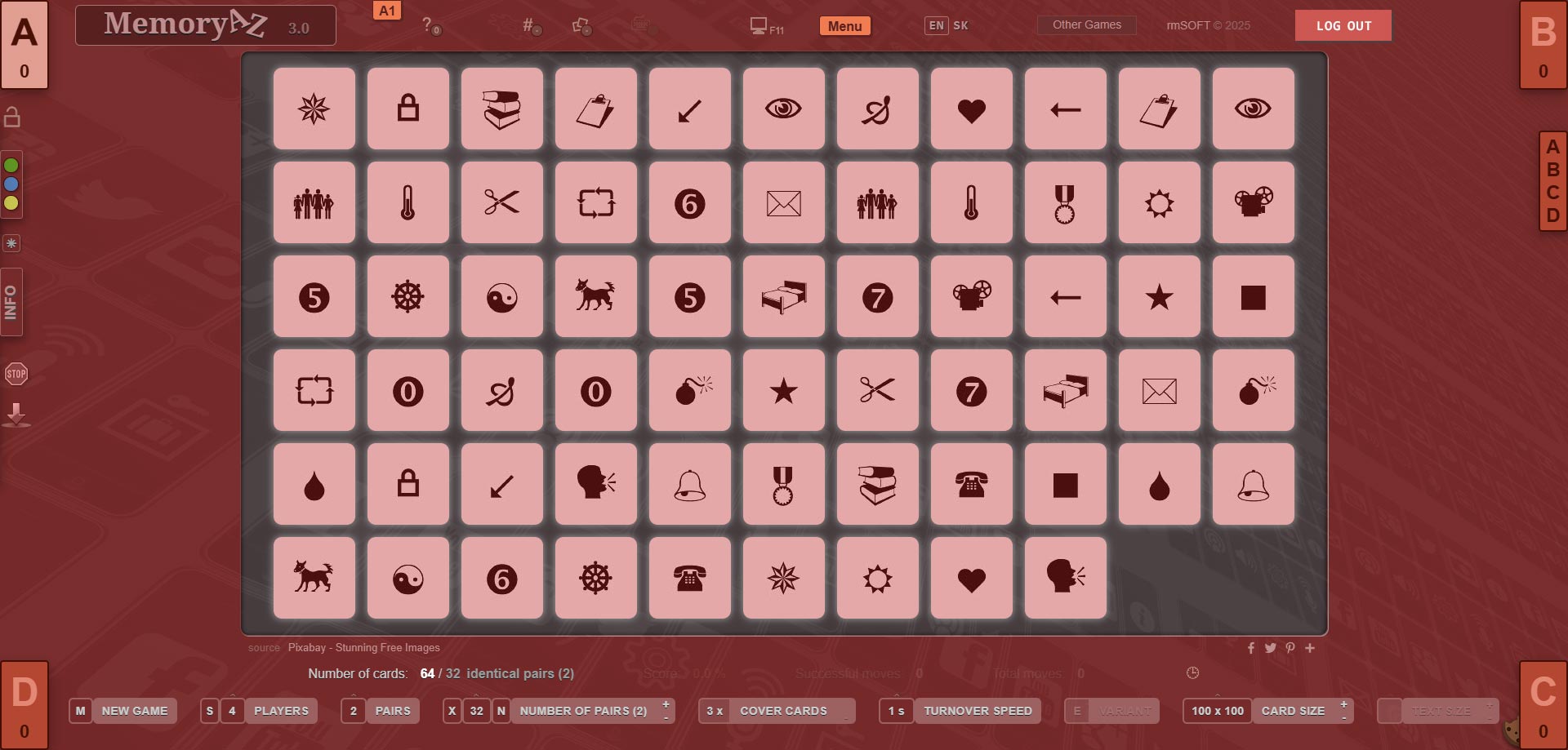 In addition to the classic game (with searching for same pairs of cards) there are different difficulty, where you need to find same (or different - but thematically similar) three of a kind, four of a kind, ...