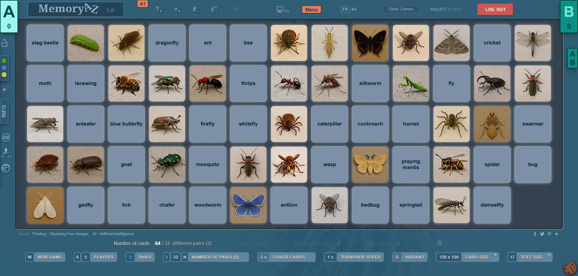 From the menu, you can select picture, text, sound or combination (picture - text - sound) Memory Game.