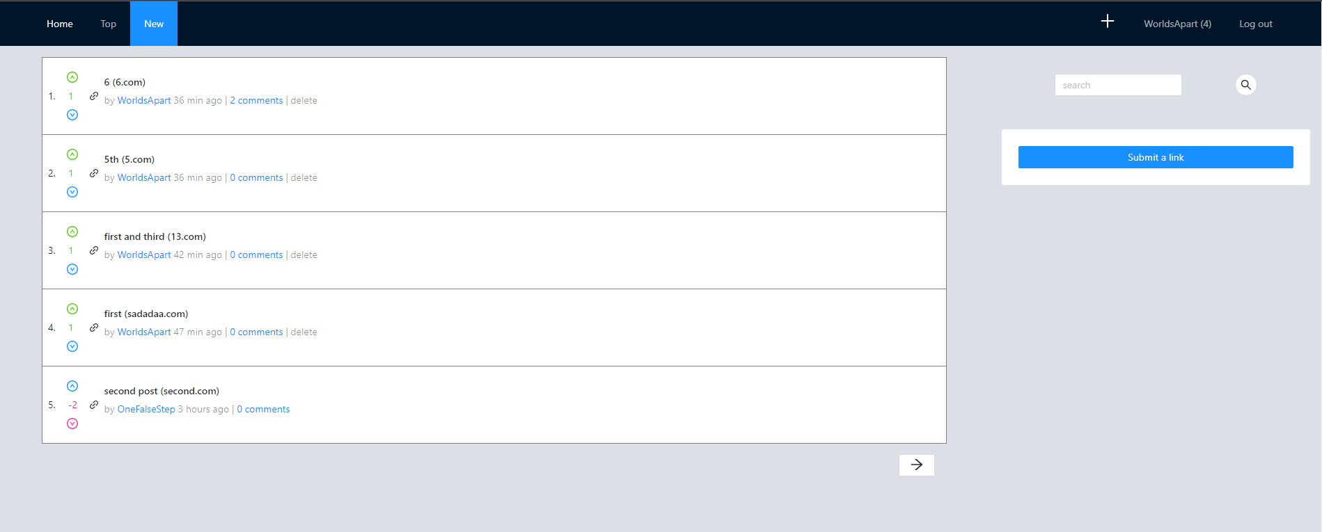 - Authenticated users can submit and delete posts