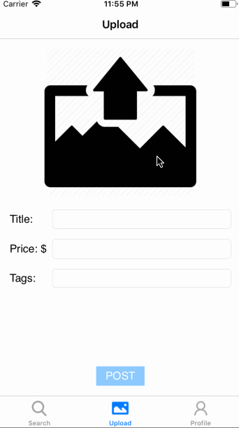 After logging in, the user is taken to the the gallery view where the user can see all of the artwork and photos that have been uploaded by other users. The user can also sort and search up for specific pieces by name or by category. After selecting on an image, the user is taken to the product page to see more information about the selected image. The user can also choose to buy the image or view the image in AR. We also created three easy buttons at the bottom that are always displayed so that the user can more easily navigate through the system if they ever want a quick and easy access to their profile page or if they want to upload a photo.