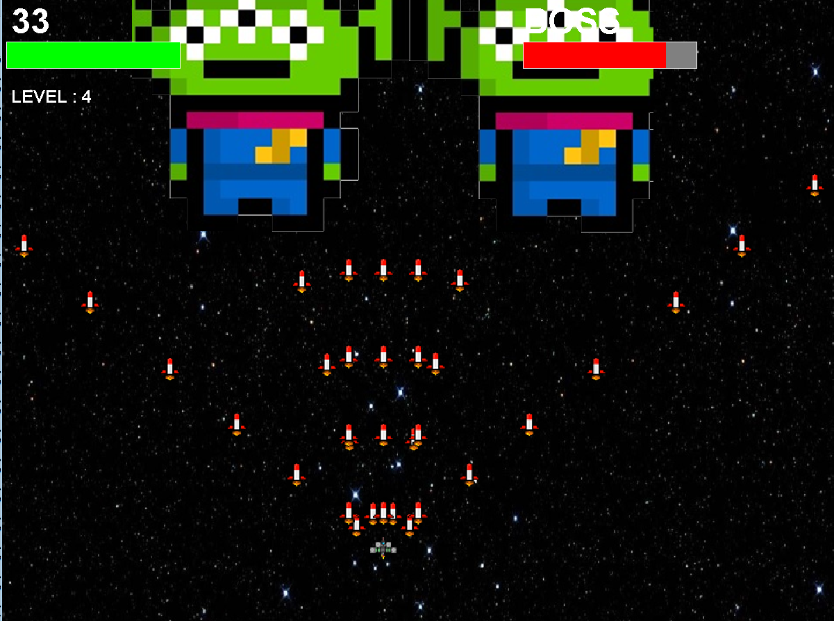게임을 시작하면 레벨별로 적들이 생성, 다 죽이면 마지막에 보스 등장.