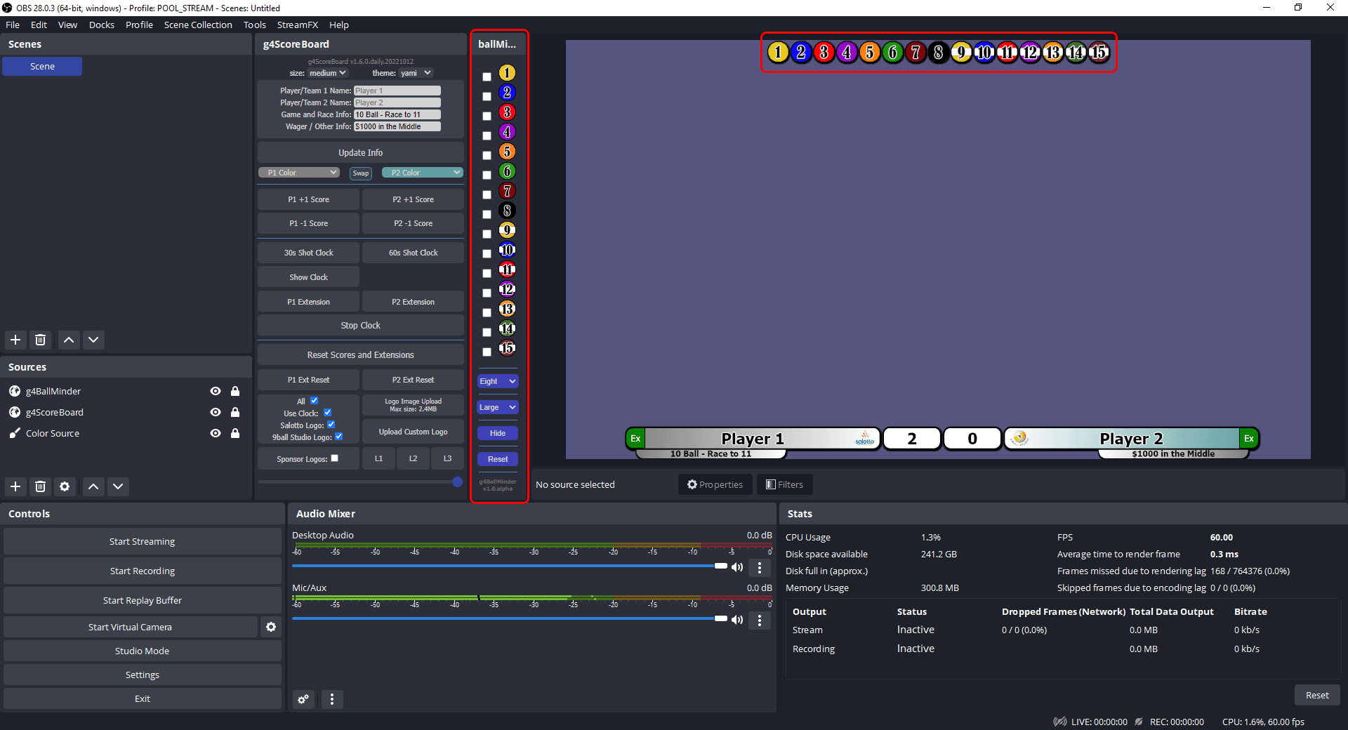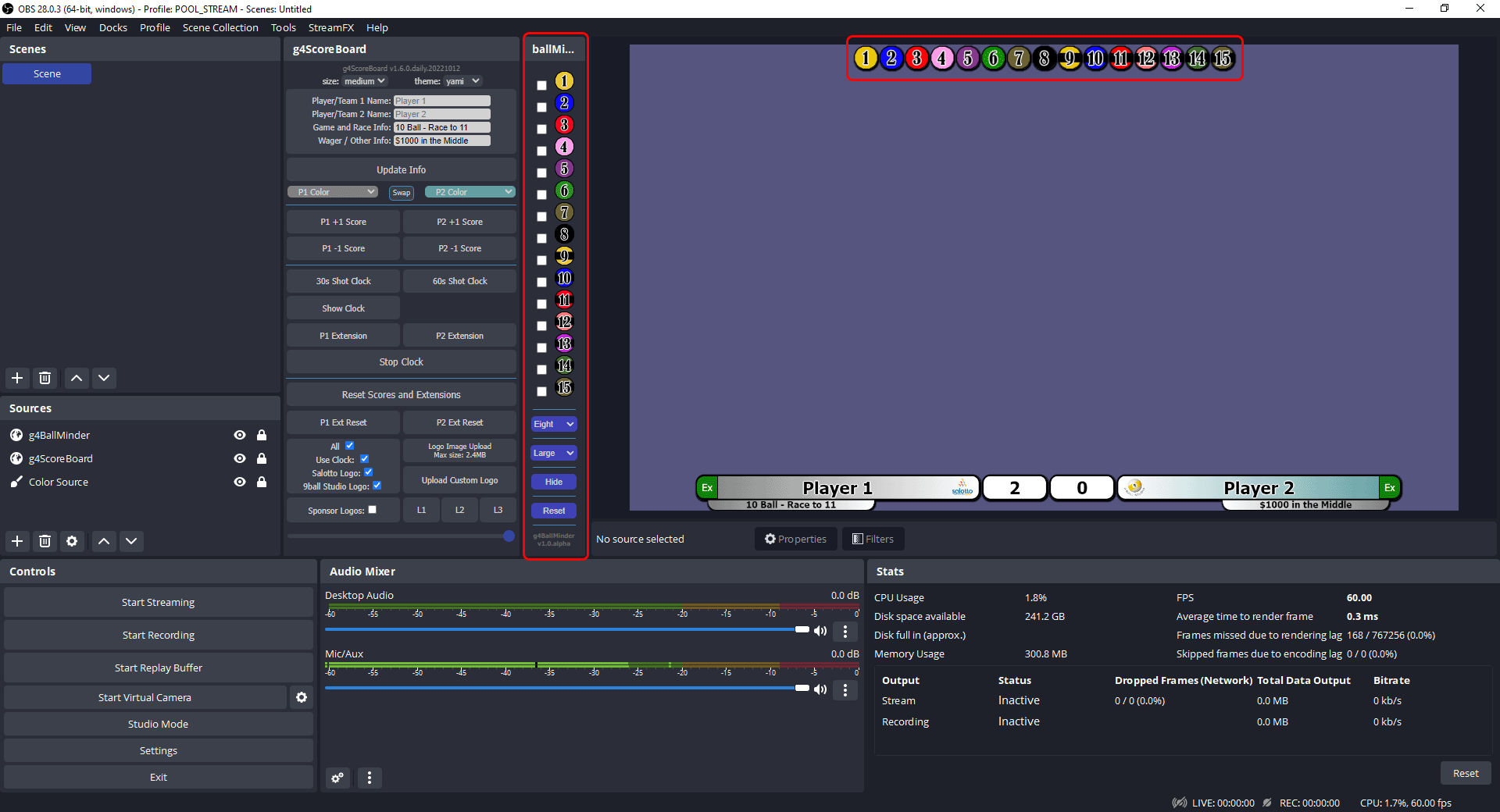 eightnineortenfrom the list and select overlay size. - Click on balls in dock to remove them from overlay when balls are pocketed.