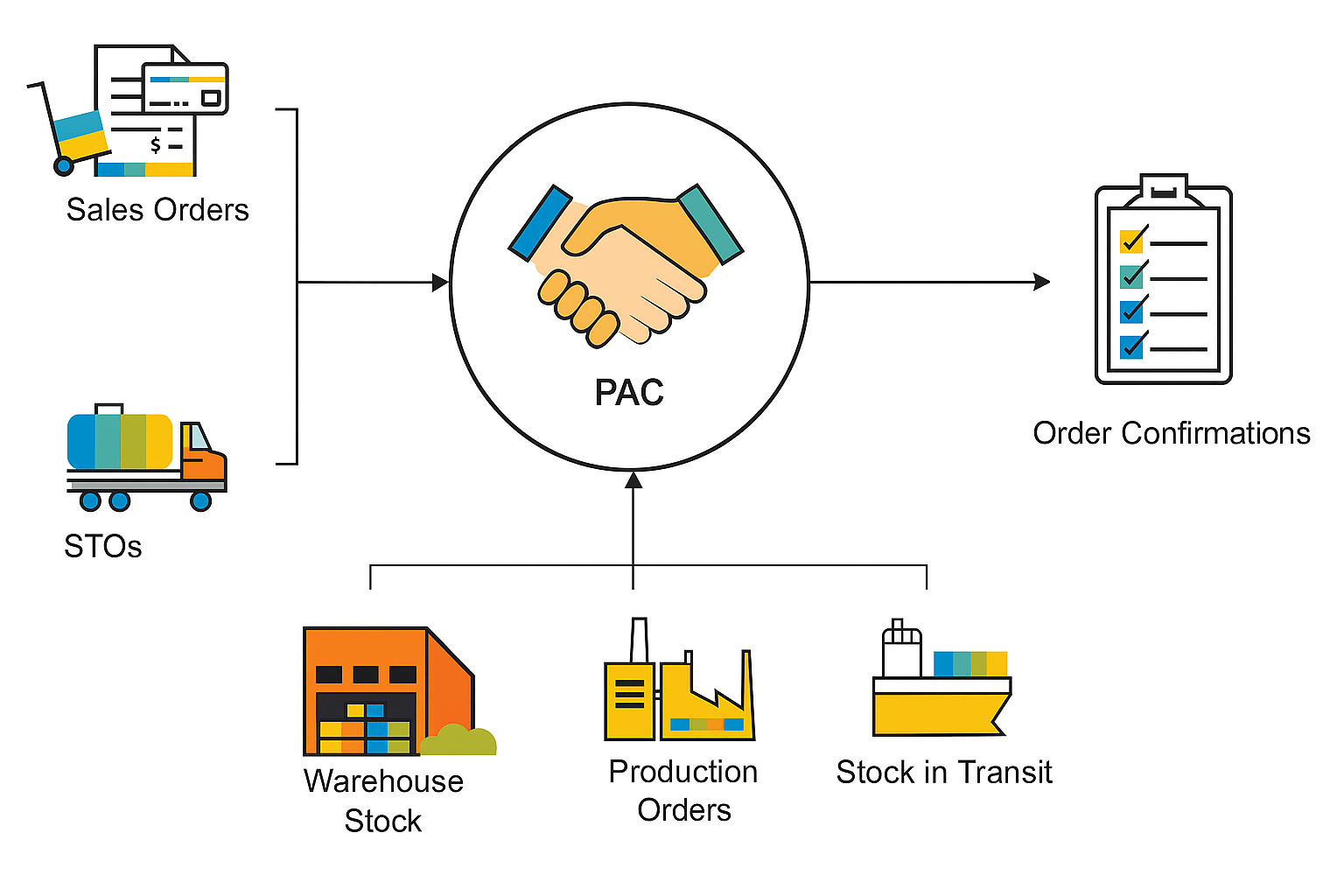 π Multi-Level ATP : Checks across the supply chain (e.g. plants, warehouses, production orders) to confirm availability.