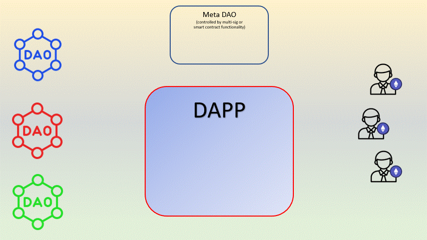 DAOs themselves can be composable elements much as protocols themselves can be. We already see the emergent of subDAOs. metaDAOs are conceptually similar - though in the opposite direction.