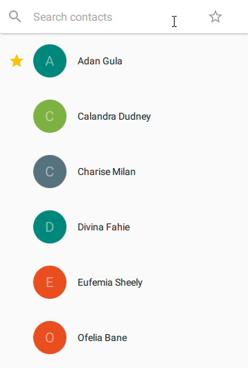 This sample app features a list of person that you can filter by their name by typing in the top search bar. You can also toggle the star button in the bar to display only the favorited persons.