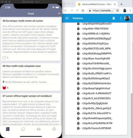 Likes screen. Refreshing with each interaction. Posts and likes realtime update are disabled for performance reasons.