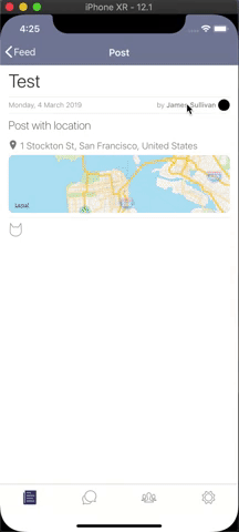 You can navigate to posts that user created or liked. User screen refreshes user data. So the user information will be always up-to-date.